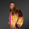 This mink fur bomber jacket with a hood looks fashionable in a bright combination of whiskey gold and dark brown shades. It can make any man look stylish as well as masculine. It looks modish with a sectioned diamond fur texture. Its pleasant glow and softness result from the finest quality mink fur.