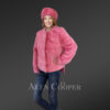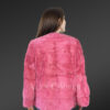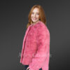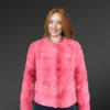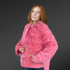 - Elegant mink fur coat with round neckline and long sleeves in soft pink shade