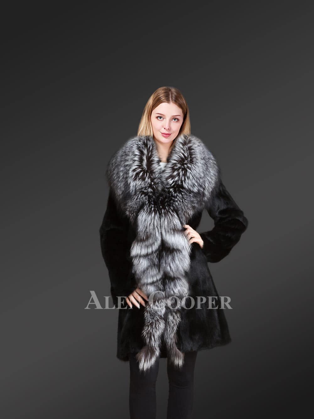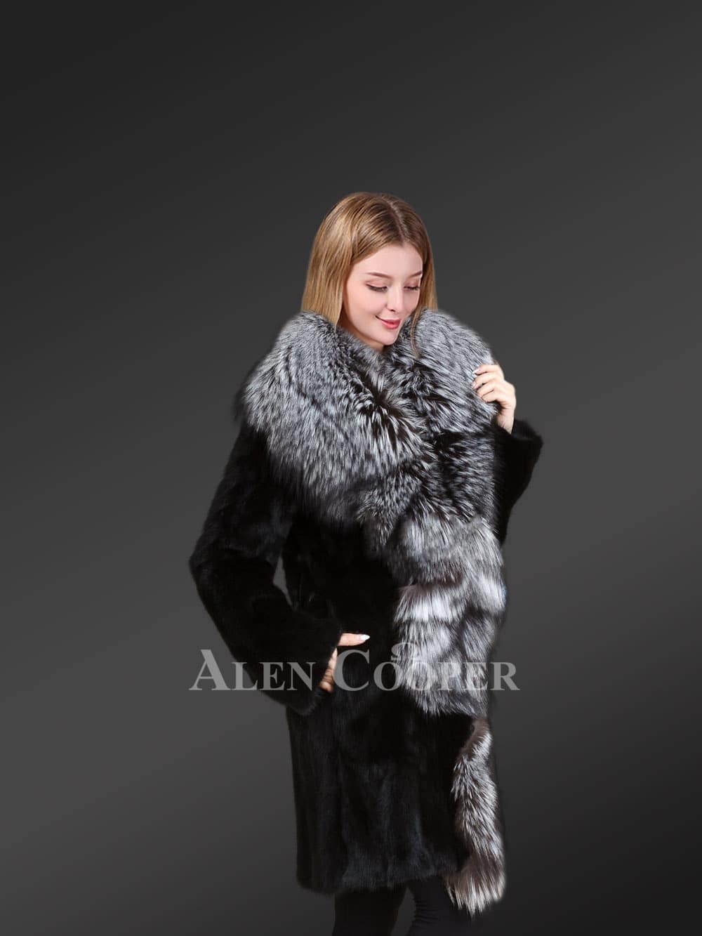 - Stylizing collar and front-line of authentic Silver fox fur
