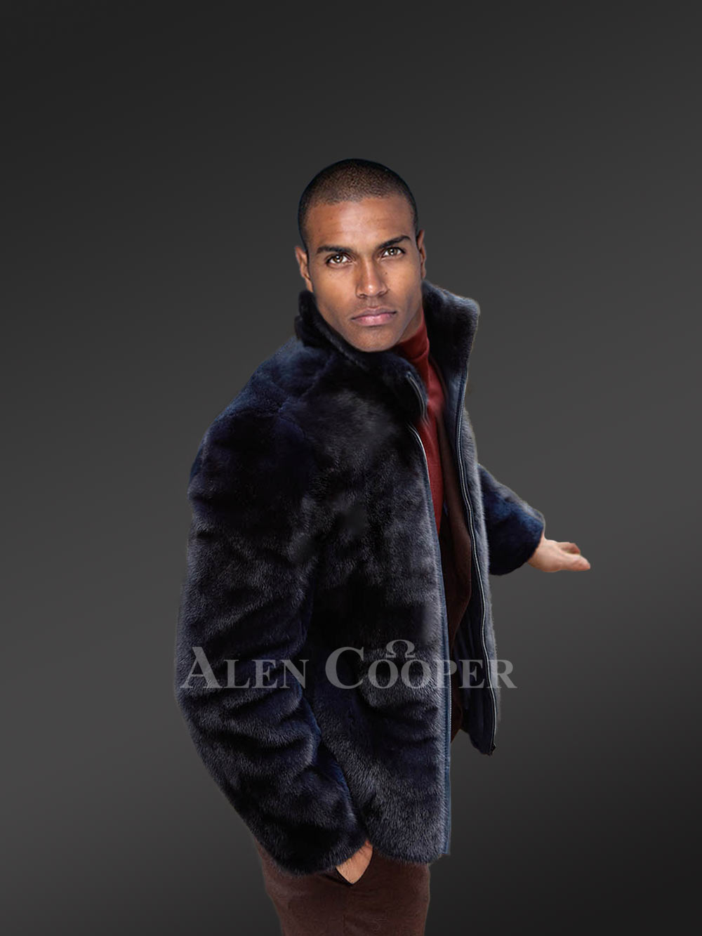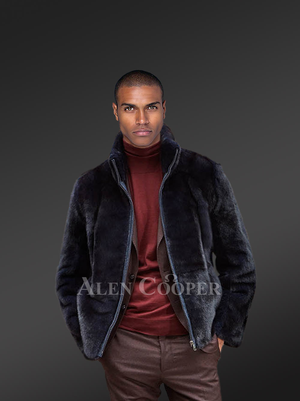 Mink Fur Navy Blue Jacket for Men – Instantly Radiating Comfort