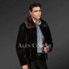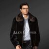 Overview: Fashionable waist-length mink jacket for men with uniform fur texture throughout the body. Original pelts of mink fur give a velvety feel to this jacket’s body. Furthermore, the balanced contrast of the pitch-black body against the brown-taupe shade of the collar significantly elevates its aesthetics.