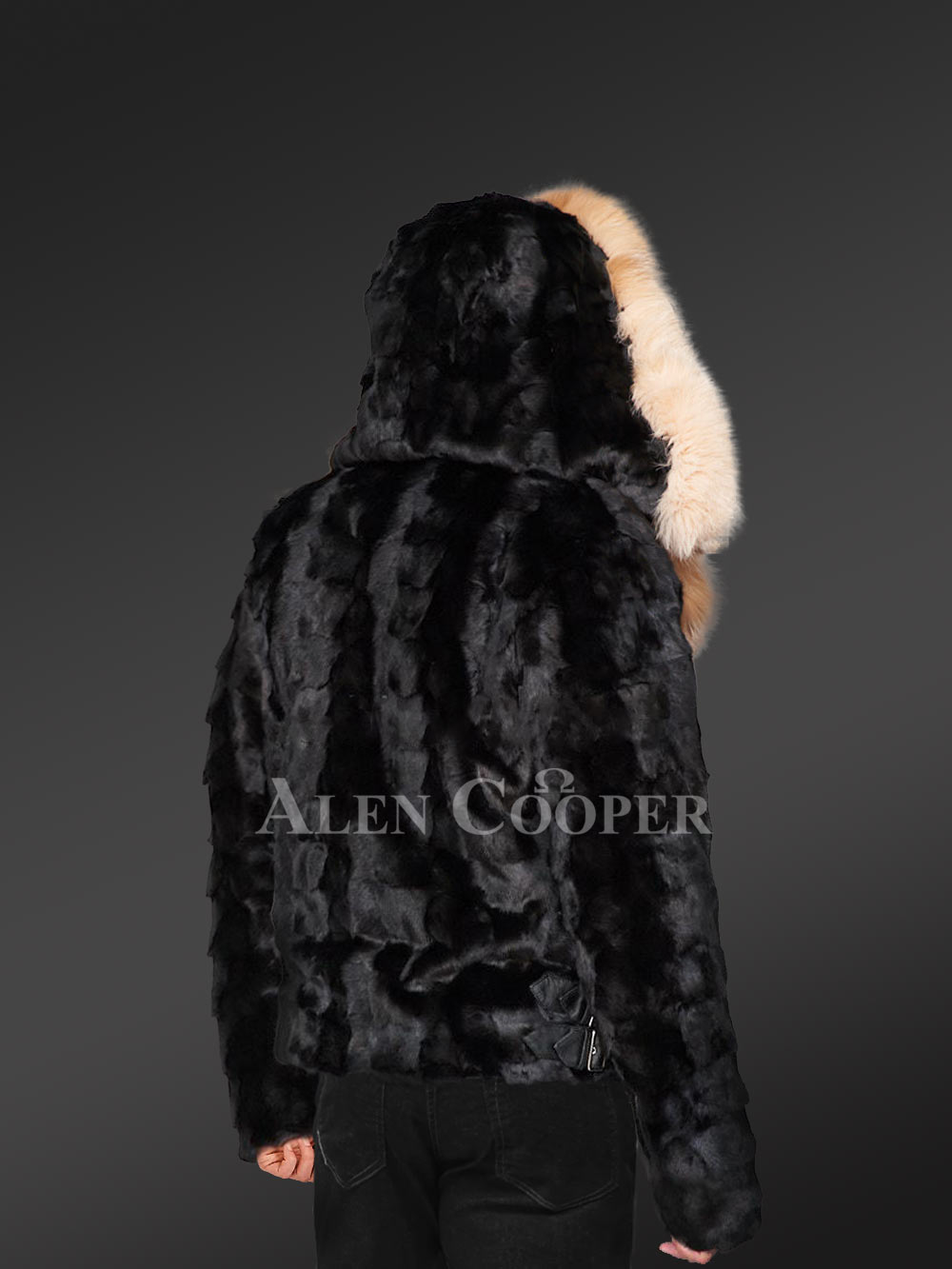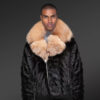 Both sides of this outfit has slit pockets with zip-up closure. On one hand, they are useful for carrying essentials. On the other hand, they can protect the hands from cold wind. To protect the neck as well as the front side, this modish jacket has a furry collar with a lapel. The bright color of crystal fox fur looks stunning in contrast to the black background of the mink fur body.