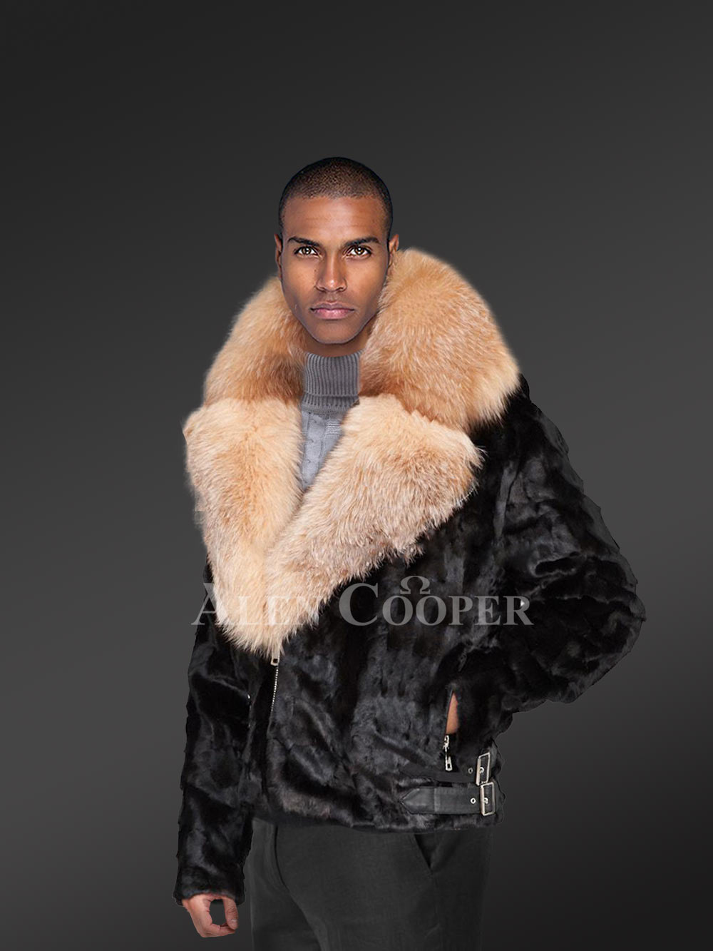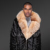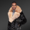 Premium Mink Jacket for Men in Luxurious Crystal Fox Fur Collar and Lapel