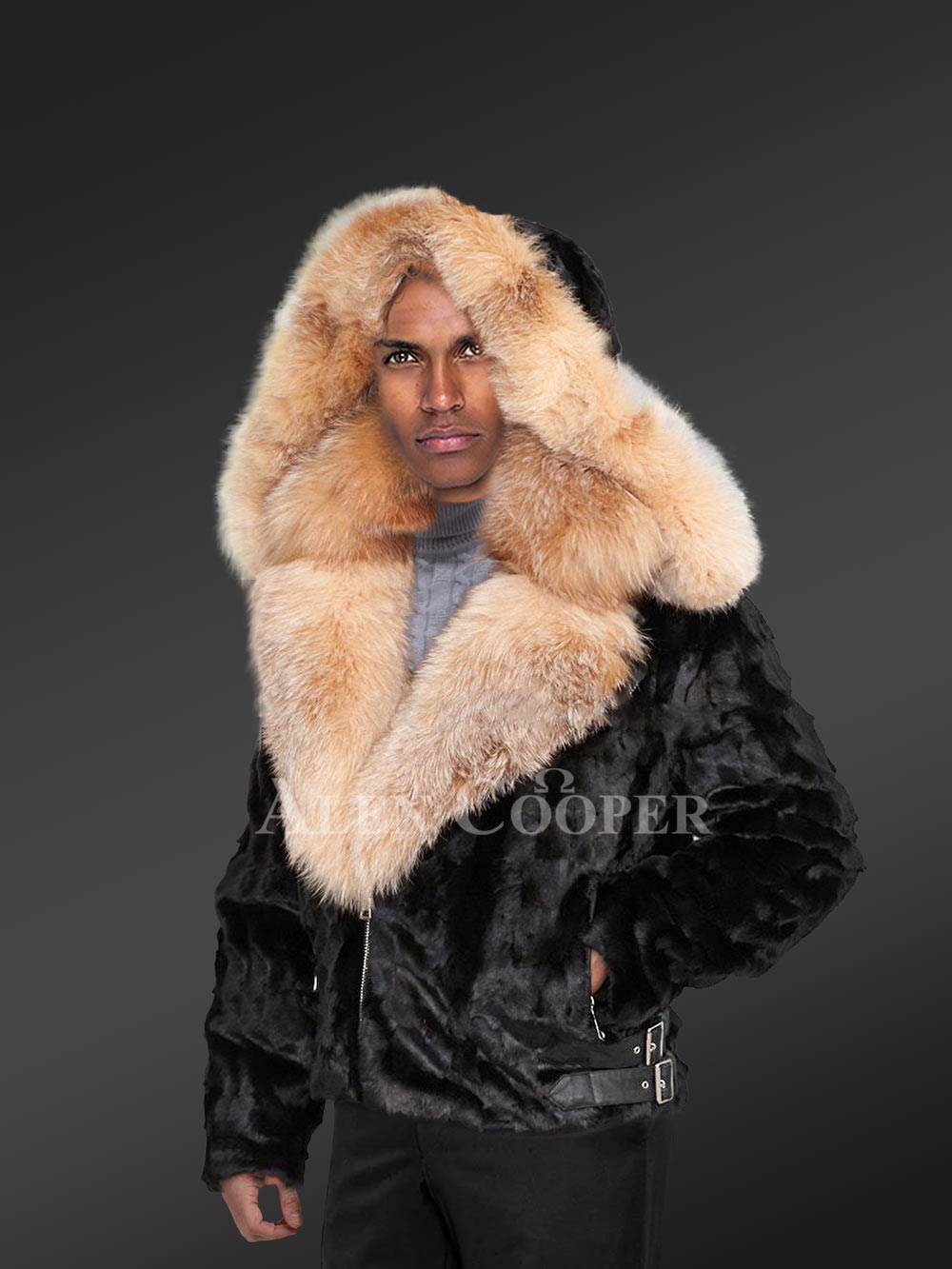 A pair of leather belts with buckles accessorize this winterwear on both sides. To protect the head, neck and ears from the brunt of cold wind, this winter-wear comes with a detachable hood of mink fur. The crystal fox fur in the border isn’t just a prettifying feature. This furry layer also offers warmth to the ears.
