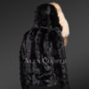 - Detachable hood of mink fur detailed by fox fur