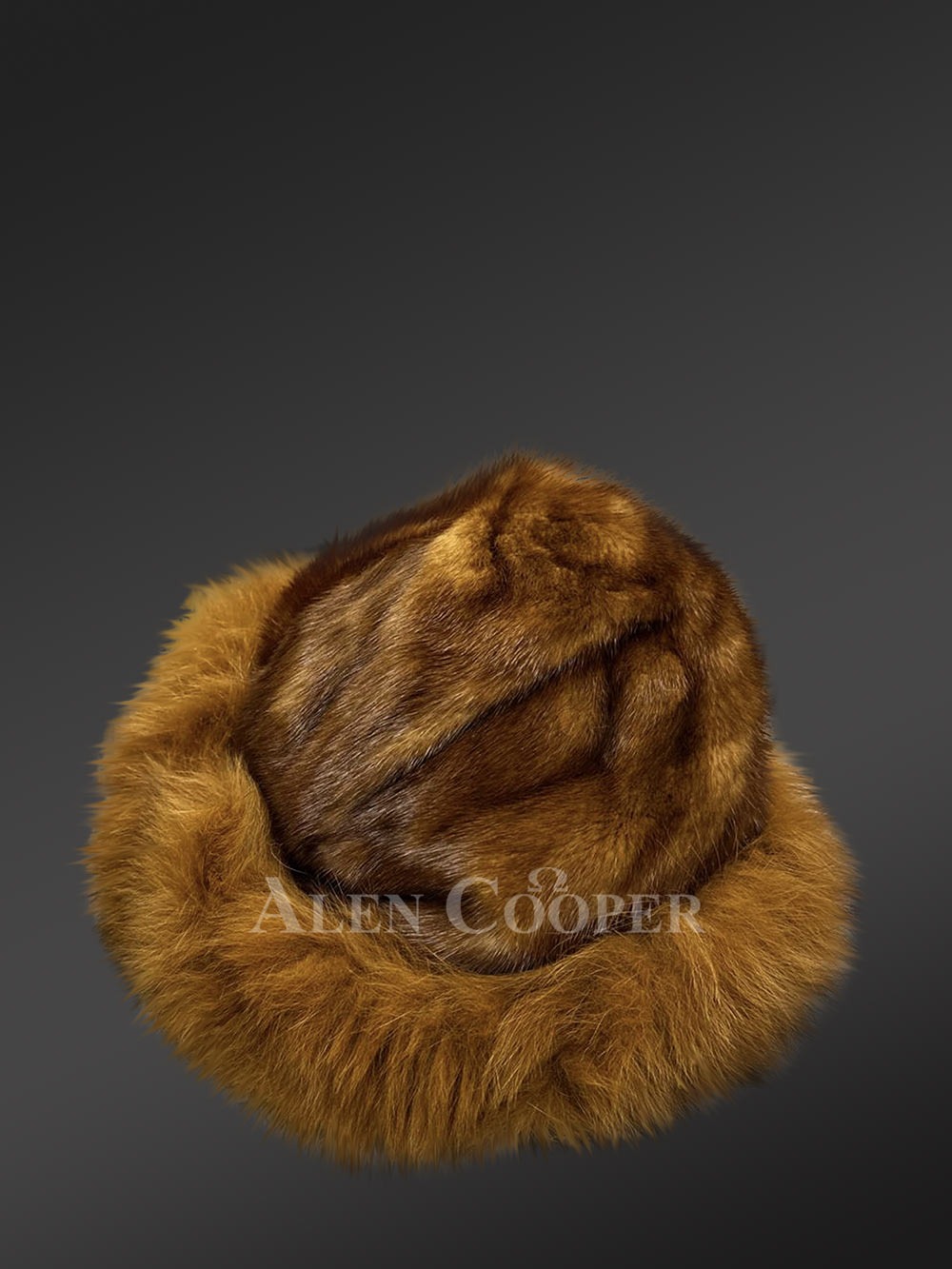 - Deluxe hat of mink fur with fox fur accentuating the border looks magnificent in whiskey shade