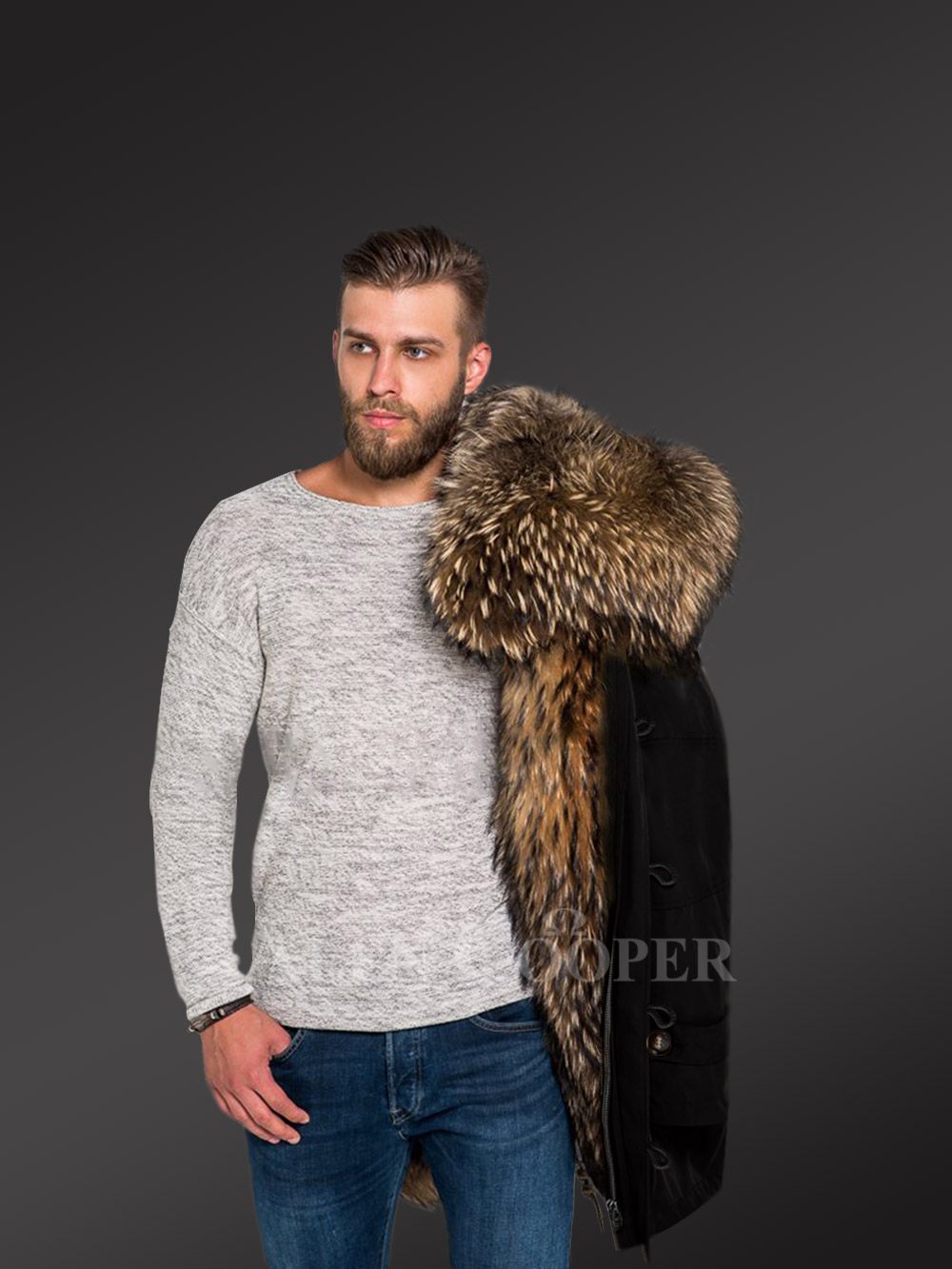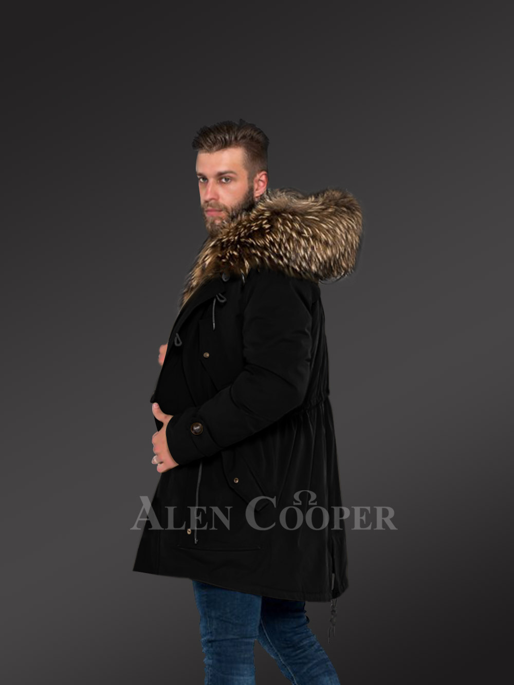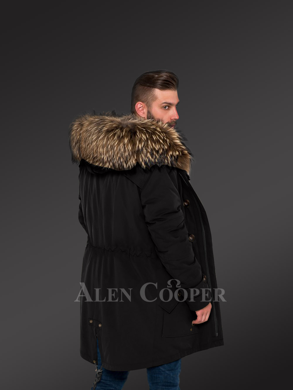More Charming and Attractive Men in Hybrid Coffee Finn Raccoon Fur Parka Convertibles with Rabbit Liner