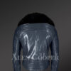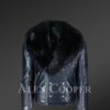 Navy Blue Biker Jacket with Black Fox Fur Collar
