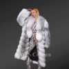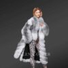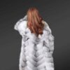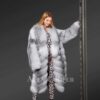 This Cross Fox Fur coat is a stylish choice for the winter season. It features long sleeves extending past the wrists. The full sleeves are of cross fox fur, which keeps the hands warm during cold weather. The fur coat has two colours, grey & white in light & dark shades. These bi-colours make the coat match any outfit without the tension of colour restrictions.
