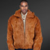 - A trendsetting bomber jacket of premium quality rabbit fur in Camel Brown shade