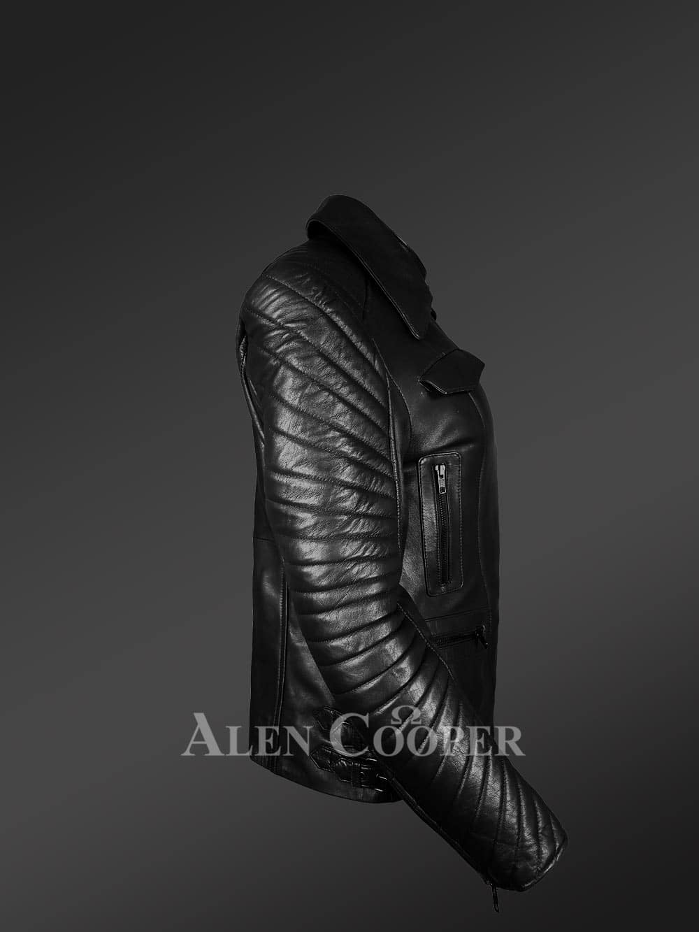 Furthermore, zip-up cuffs and front closure enhances the snugness. However, front closing is in diagonal style to promote statement as well as structural fit.