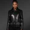Secondly, the Women Leather Jacket in Biker style offers much warmth and comfort even in severe cold. Rather, the attractive jacket is designed with ample care and precision which strike the perfect balance between aesthetic appeal and practical functionality. It reflects absolutely flawless finishing. Also, the jacket highlights the feminine curves in a dignified and elegant manner. Indeed, this black outerwear makes a best bet towards elegance.