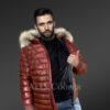 Without a doubt, this outerwear looks magnificent in a vivid shade of maroon. The shell made of lamb hide boasts a pleasant shine which results from a complete Aniline finish and superb processing. Furthermore, the quilting puffer-style covers the jacket’s back and front along with the sleeves for maximum insulation.