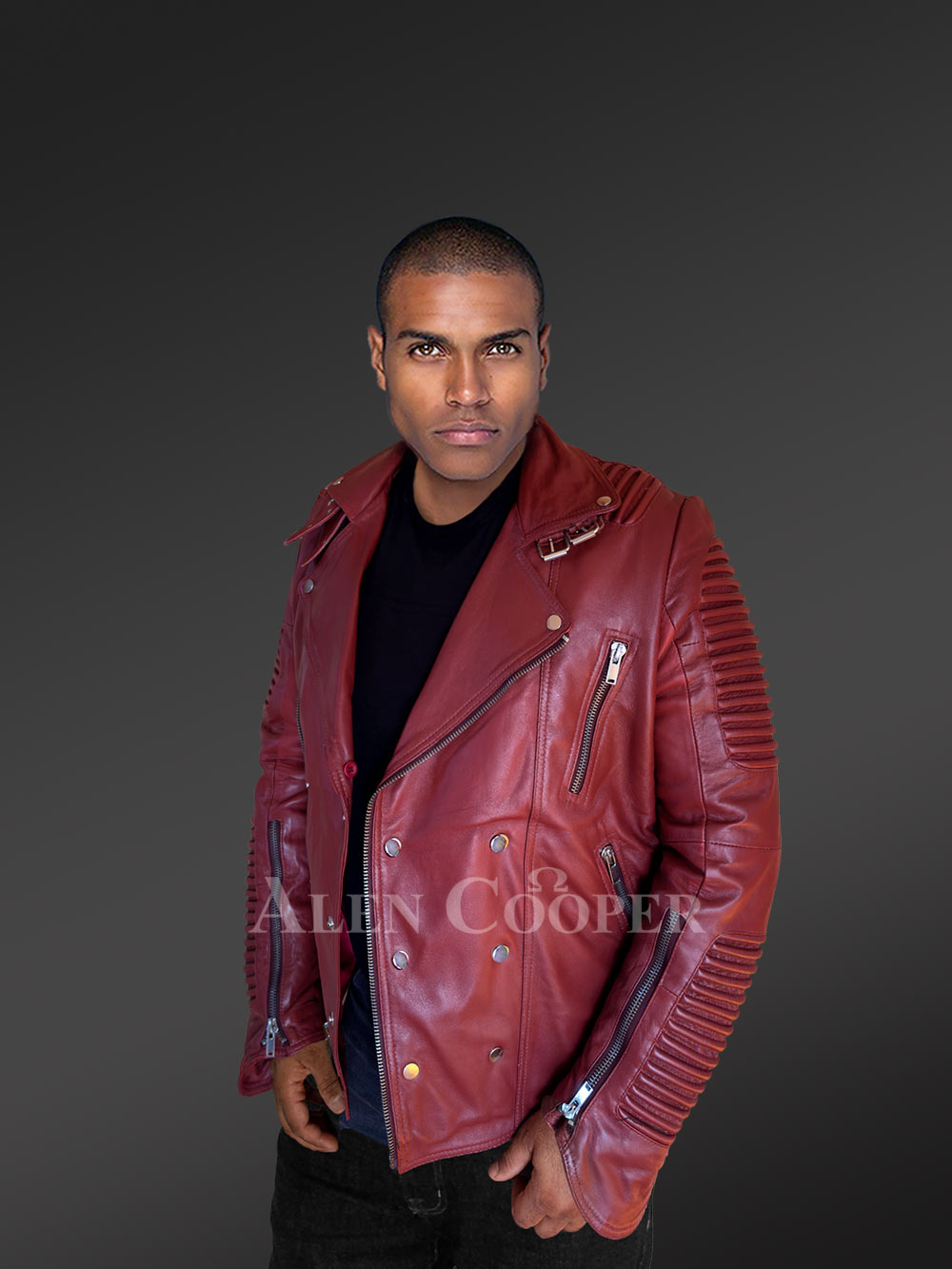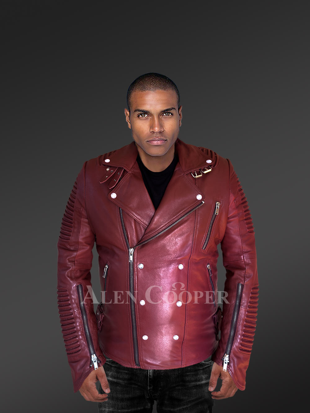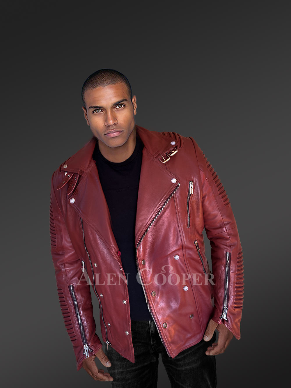 All in all, the charming red authentic leather biker jacket completes the extraordinary touch by the piper style trait along the shoulder and back. Thus regal wear is one of the most unique designs to remain evergreen with overall stalwart tailoring. It is a one-time-investment and its exclusivity will flourish on the fashion platform.