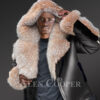 Our double-faced Real Men Shearling Coat gives a ravishing handsome look with the addition of a zip-out hood made of lustrous long, guard crystal fox fur. Furthermore, we cannot forget about the hemline area stitched to fur trim, showcasing genuine shearling hair.