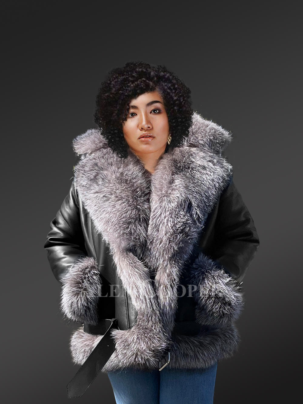 The Fox Fur embellished women coat in real sheepskin is an elegant and stylish outfit for all who love fashion. Also, it is an authentic leather coat that combines fashion, comfort, and warmth. Further, the soft and supple leather texture outside enhances the luxurious look of the jacket. Hence, outerwear is a must-have for the winter wardrobe, especially for those women who love modern-style biker jackets.