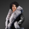 However, the wearer can wear the jacket with the collar up. Yet, that option can be omitted by using the hood, which serves the purpose. So, the leather hood is also bordered with fox fur, creating the same attire as the jacket.