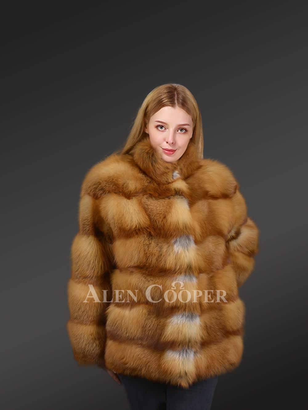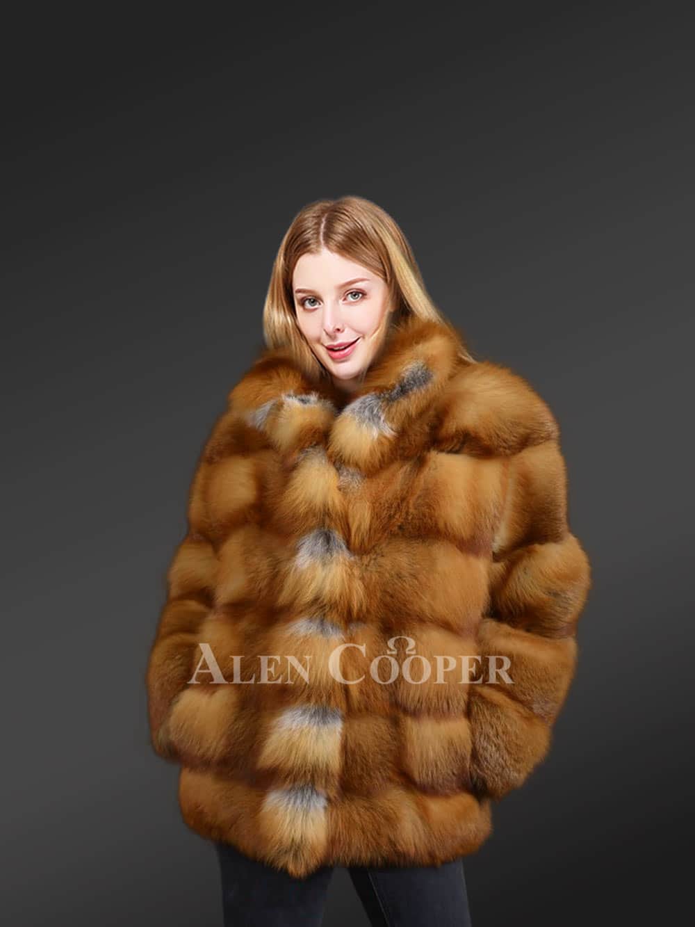 Womens Coat of Red Fox Fur – High-Fashion Outfit with Convenient Features