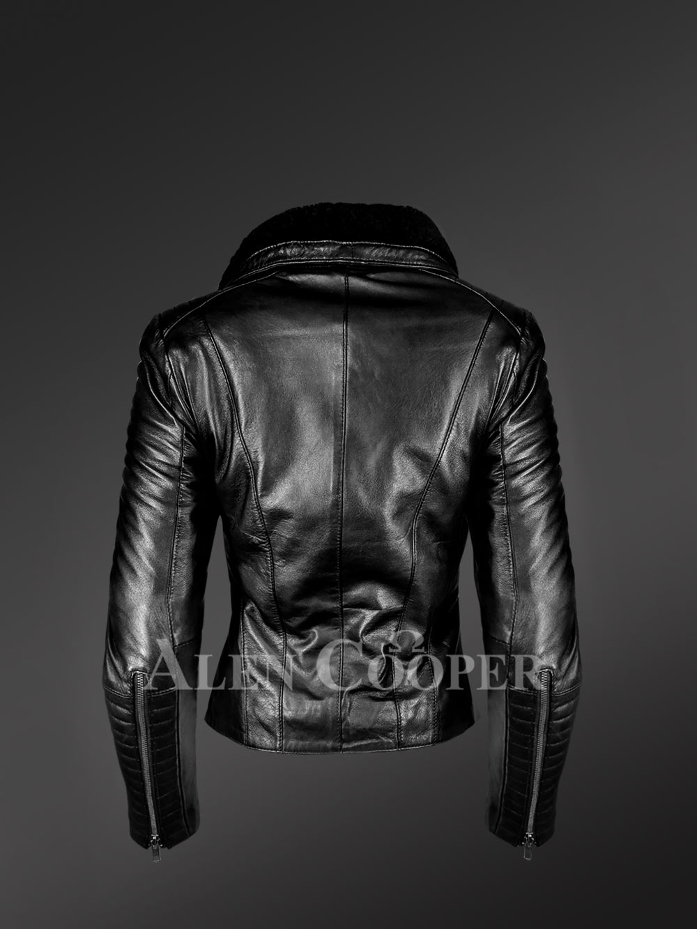 - Fashionable biker jacket made of premium quality lamb leather and shearling wool