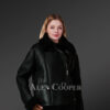 Any woman will look like a diva wearing this classy shearling sheepskin jacket. It looks gorgeous in pitch-black shade with nappa crackle finish. The turned-down collar with a notched lapel adds to the elegance of this winterwear. Furthermore, it creates a protective layer for the neck and front of the body.