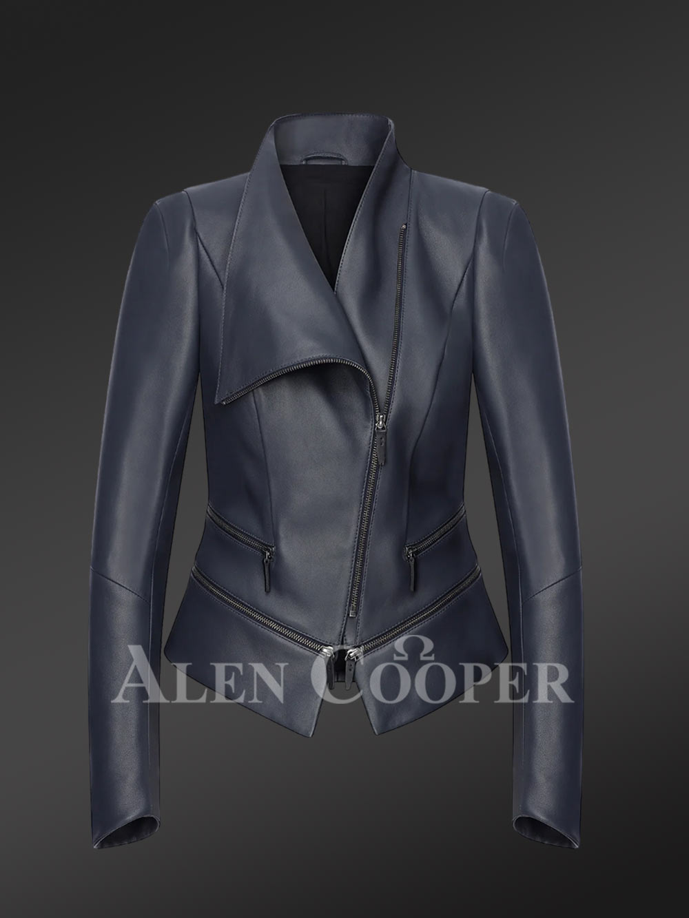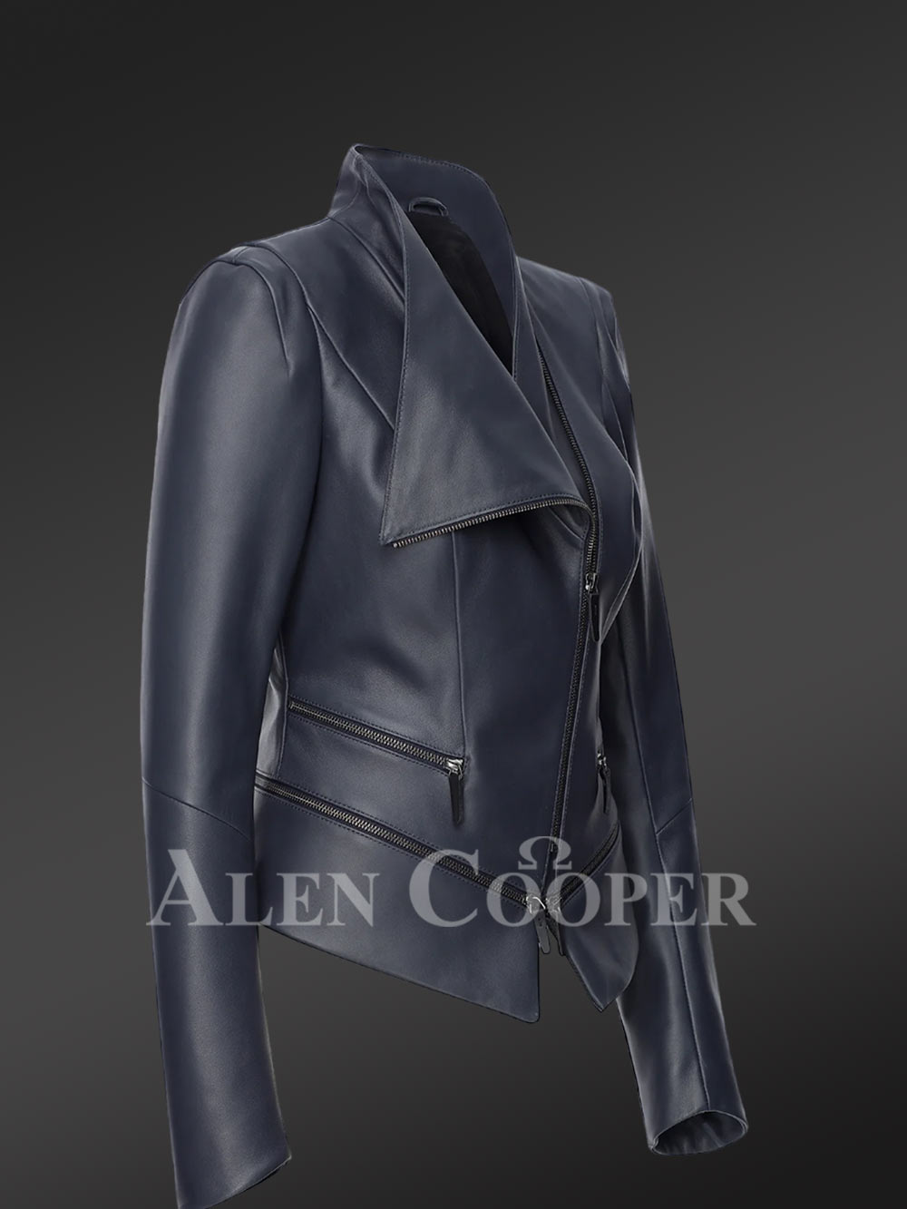 Adjustable Length Single Collar Biker Jacket for women