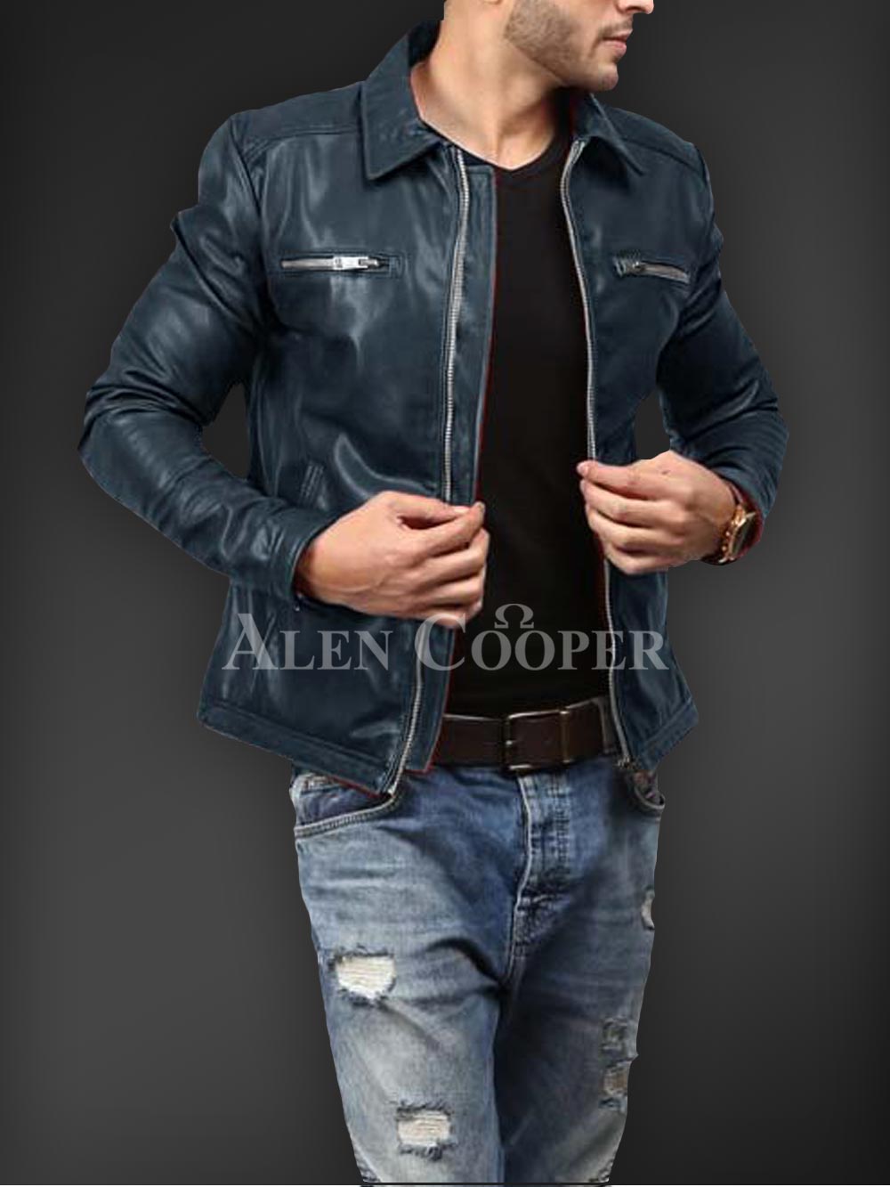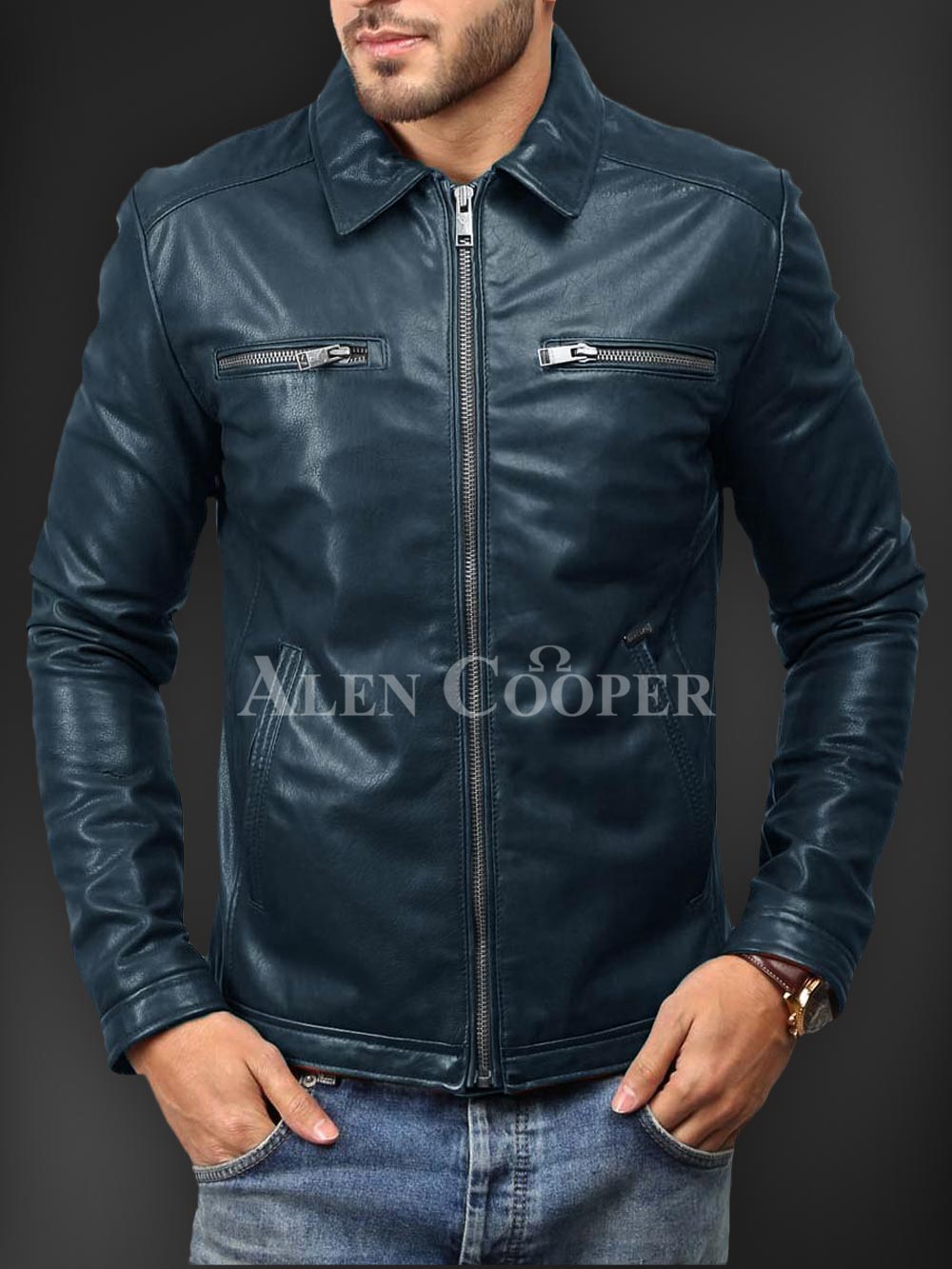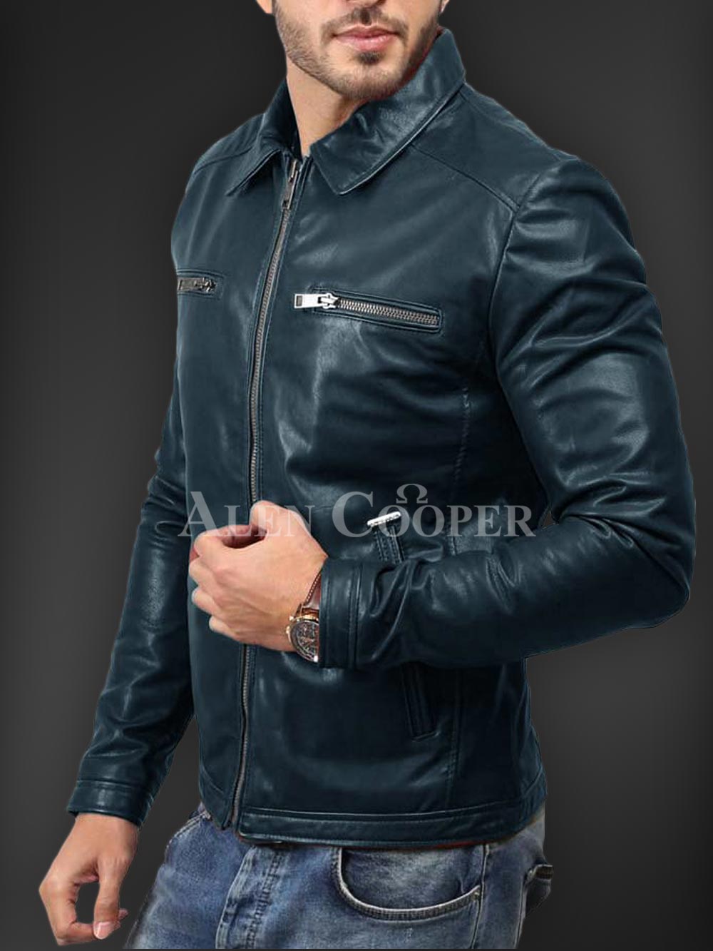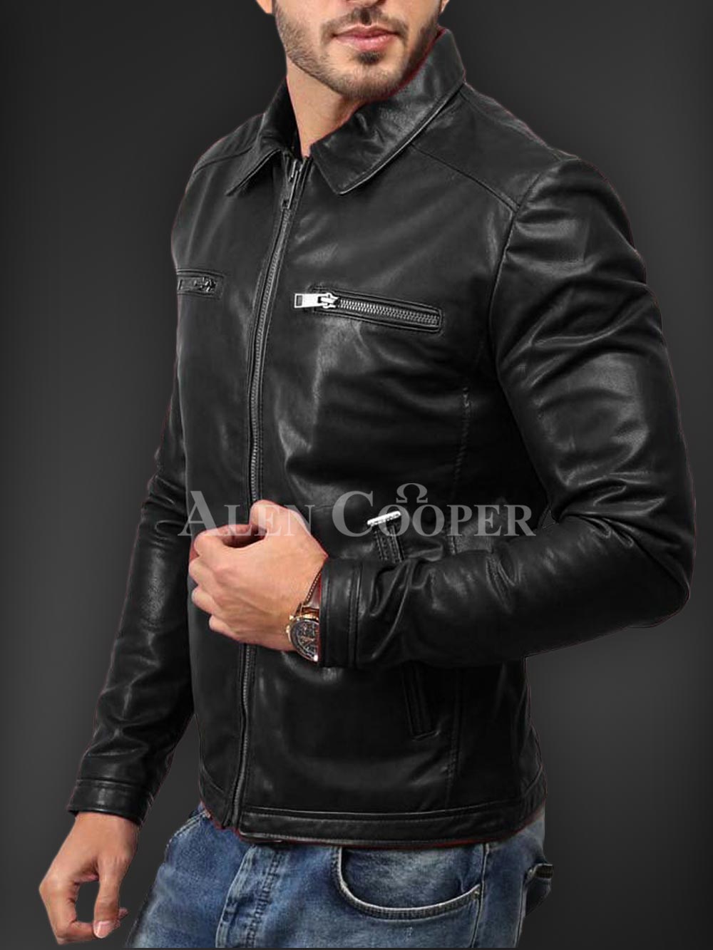 Description- Having a simple yet super stylish appeal in winter is much appreciated1 and in order to let you that Alen Cooper is here with its affordable winter jacket series. This is a real leather winter jacket with incredible warmth capacity. Zipped side pockets, straight front zipper closure, long sleeves, and satin inner linen are the utmost sparks of this outstanding winter leather piece to instantly craft a bold appeal.
