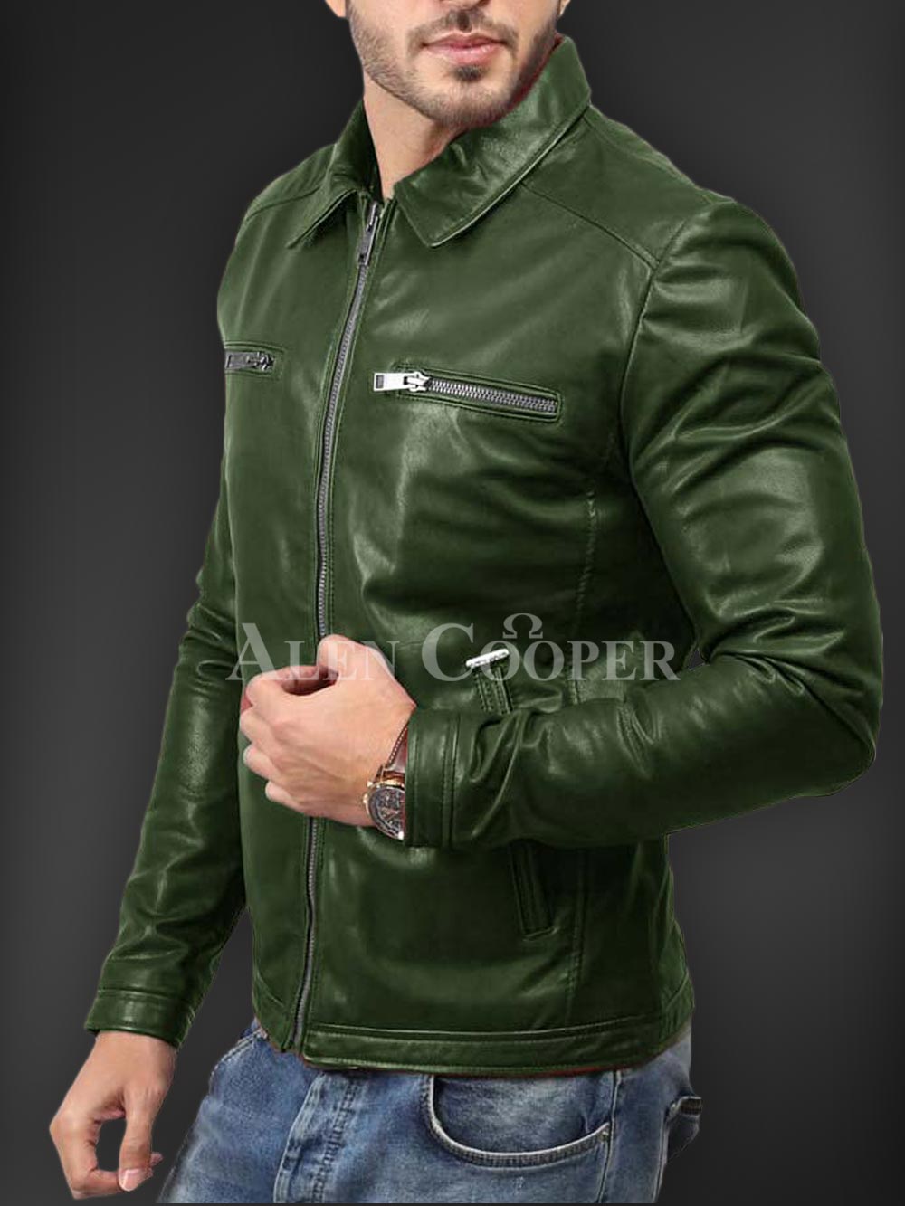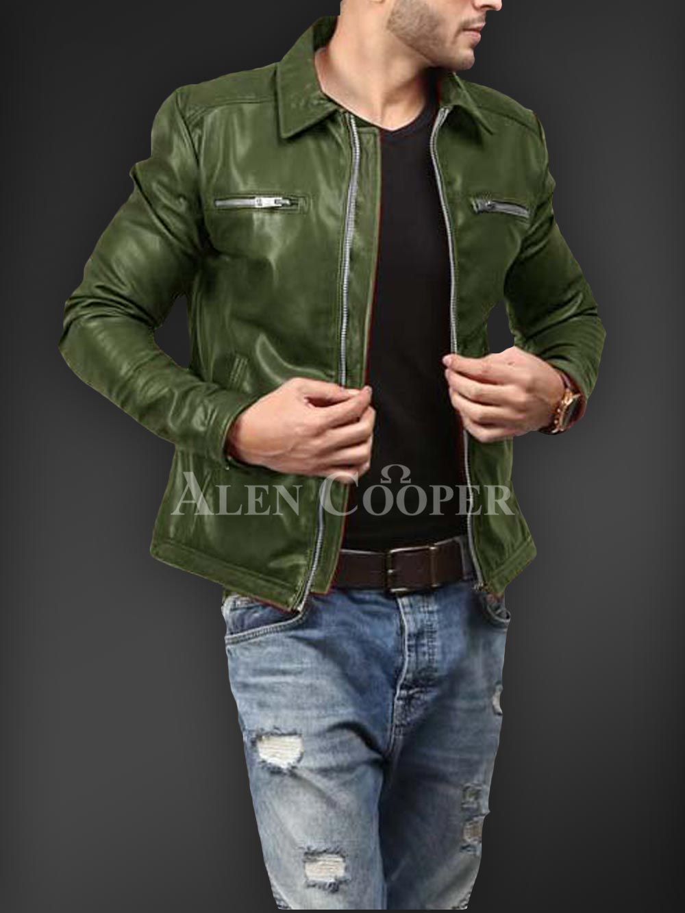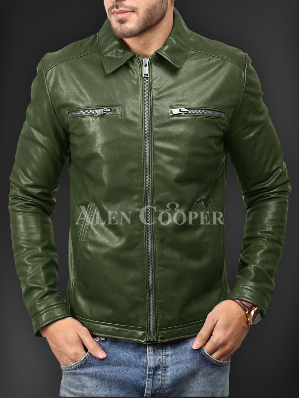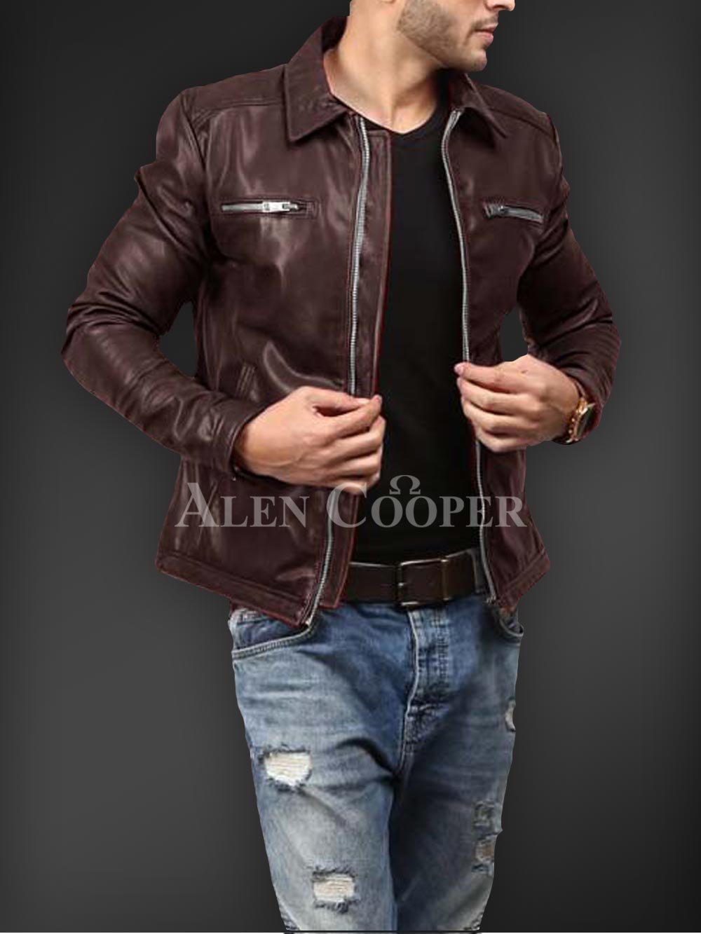 Description- Having a simple yet super stylish appeal in winter is much appreciated1 and in order to let you that Alen Cooper is here with its affordable winter jacket series. This is a real leather winter jacket with incredible warmth capacity. Zipped side pockets, straight front zipper closure, long sleeves, and satin inner linen are the utmost sparks of this outstanding winter leather piece to instantly craft a bold appeal.