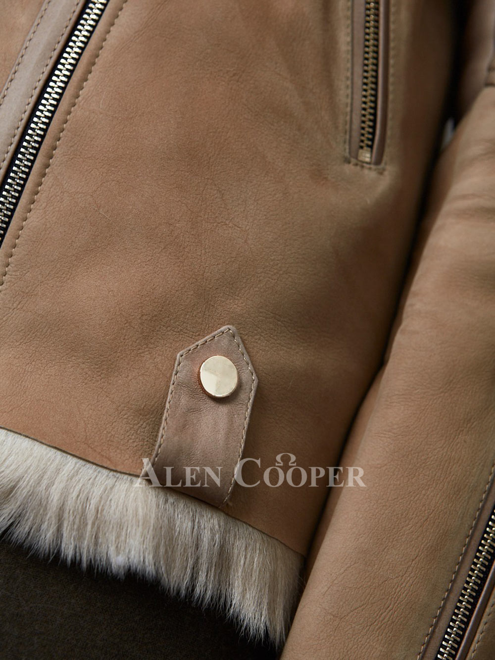 Suede Finish Beige Toscana Shearling Jacket for Women