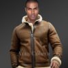 Tan Brown Shearling Bomber Jacket for Men with Leather Lining
