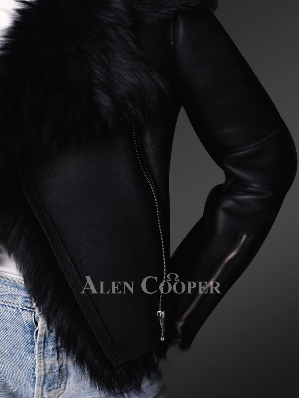 Made from genuine pelts of Toscana variety of shearling, the black Nappa finish jacket has an astounding aesthetic appeal. The Toscana shearling jacket for women has a flamboyant collar. The inner woolen layer of the shearling is flipped and exposed to define the collar, the lapel, the frontline, the cuffs, and the bottom edge of the jacket. The striking contrast makes the Toscana shearling jacket all the more alluring and gorgeous. The longer hair along with softer and supple texture is the best way to recognize this variety of fabric.