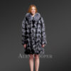 This luxurious turtleneck fox fur coat with decorous appearance is designed using sections of fox fur. Experienced designers have artistically put these sections together to make this coat look majestic. For maximum protection to the neck, the turtleneck collar is also designed using fox fur. With long sleeves and satin lining, this regal outfit can be the ultimate outerwear for the winter.