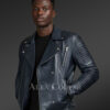 The piped leather biker jacket is a one-of-a-kind variation of the traditional men’s biker jacket. Intricate embellishment is a cutting-edge twist, resulting in a striking appearance. It is richly decorated while forming fashionable attire. Its refined and moderate appeal enhances it to work well for any decent occasion, aside from everyday settings.