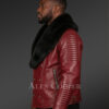 The Biker jacket for men has snap button detailing over the double-breasted collar. It is also well ornated on the frontline of the outerwear. Not just that, the wine body leather jacket elevates its color with snap button detailing and zipper linings. The first is the asymmetrical closure at the center ensuring optimum insulation inside. Furthermore, zippered side pockets on each side as well as one on the chest area. They are spacious to keep your palms warm and comfortable outdoors.