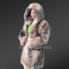The fittings of this long outfit are not tight but a casual fit with a baggy style. The baggy style makes it easy and comfortable for the wearer in the winter months without compromising warmth and cosiness. The crystal effect, the hood, the length and the texture of the fox fur coat gives it a touch of luxury.