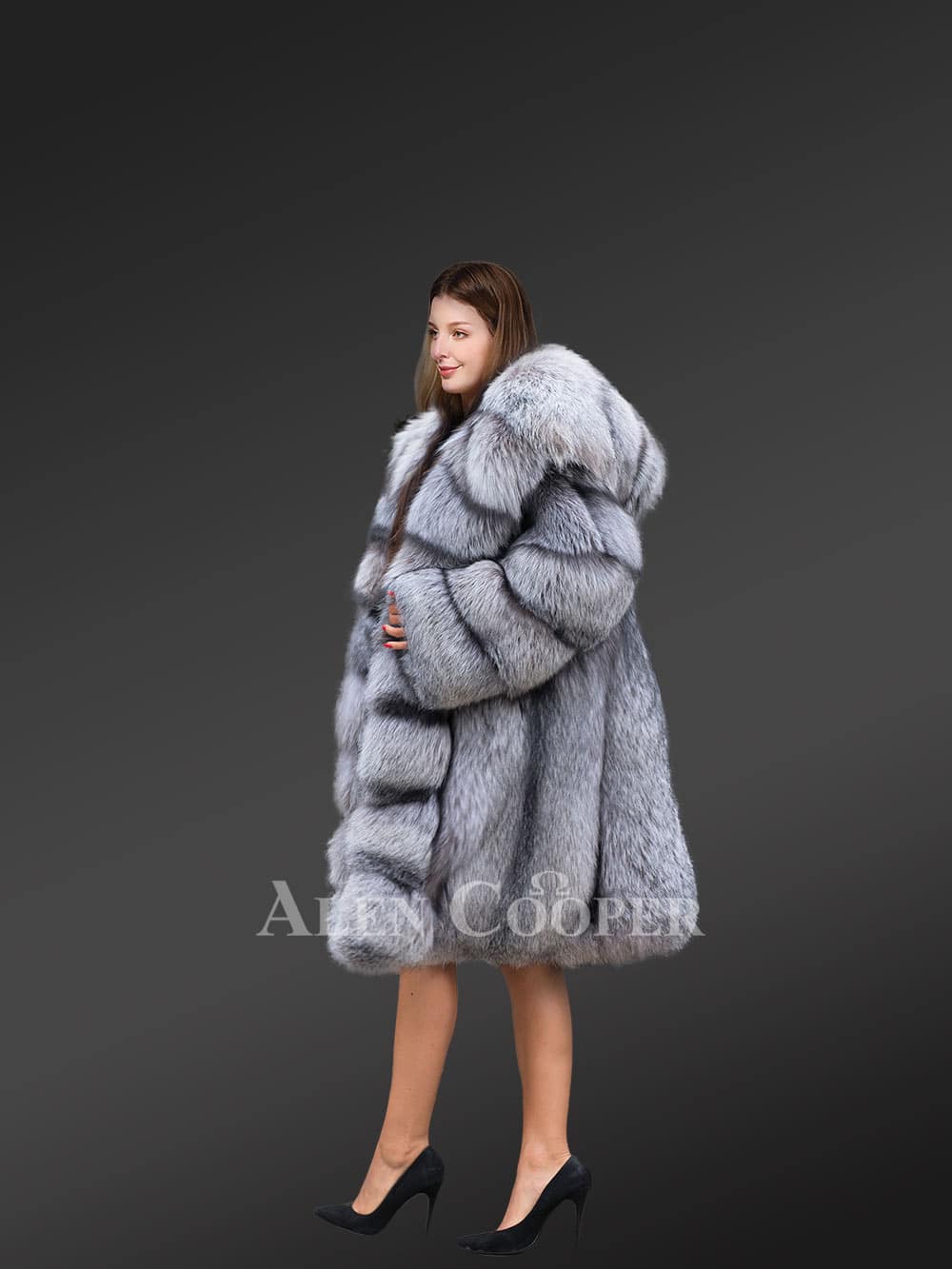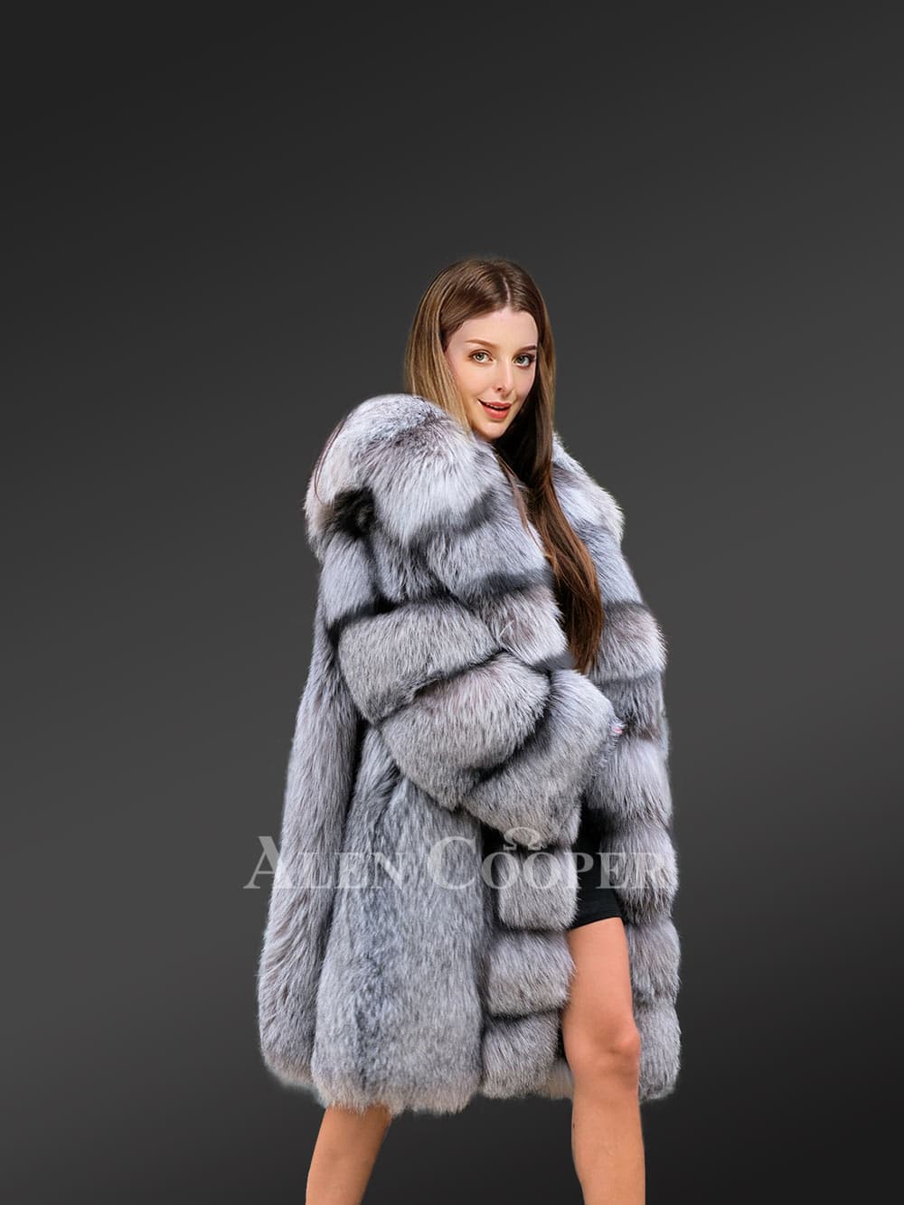 This luxurious knee-length coat shines with a natural gloss of silver fox fur. It’s befitting for any time of the day because of the soothing color combination. Surely, one can make a grand entrance after donning it because of its plush looks and features. Without a doubt, this is an outfit for winter-time parties or gala.