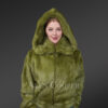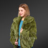 Women’s Authentic Rabbit Fur Bomber Jacket in Olive