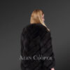 Adding this deluxe womens black fox fur coat to one’s personal collection definitely elevates one’s winter wardrobe. Designers have handcrafted this waist-length coat using finest pelts of fox dyed in black for durability and comfort. Artistic arrangement of the pelts certainly attributes a unique look to this coat. It also brings the comfort of silk satin lining which feels velvety to the touch and enhances the comfort of wearing this jacket. The slit-style side pockets are useful for carrying one’s essentials.