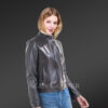 This chic womens black lambskin leather jacket looks fascinating with a slim-fit body and sleeves with zippered cuffs. The buttery texture of leather certainly offers a pleasant experience to the wearer.Designers have handcrafted this short jacket with attention to the quality of every feature as well as to the outfit’s longevity. It has a metal zip fastener along with a buttoned band collar. Therefore, one can enjoy maximum protection and warmth in colder months. One can safely carry their essentials inzippered side pockets which are equally useful for keeping the palms warm in freezing temperatures.