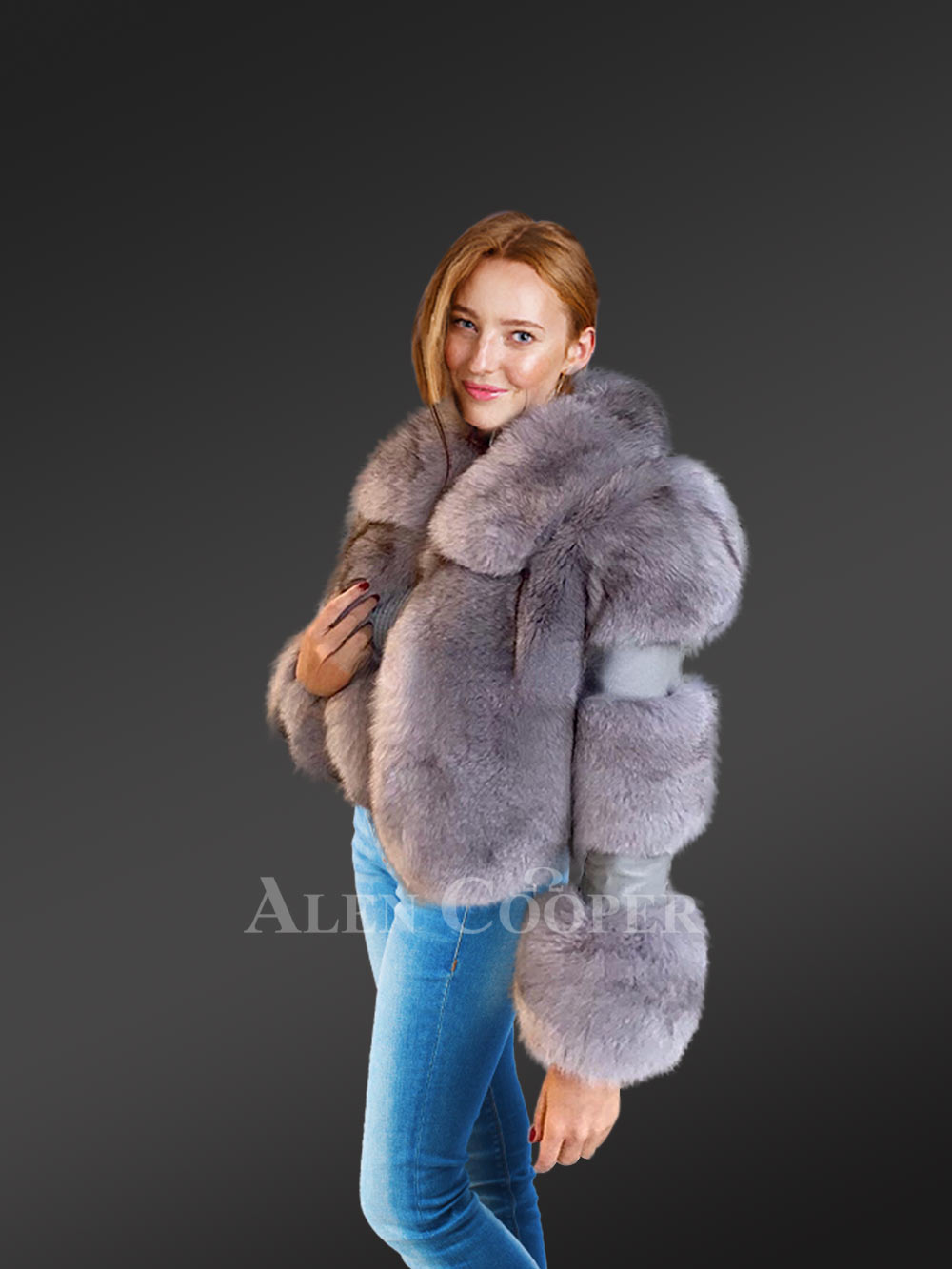 Womens Crop Coat In Fox Fur For A Trendy Look And Comfort