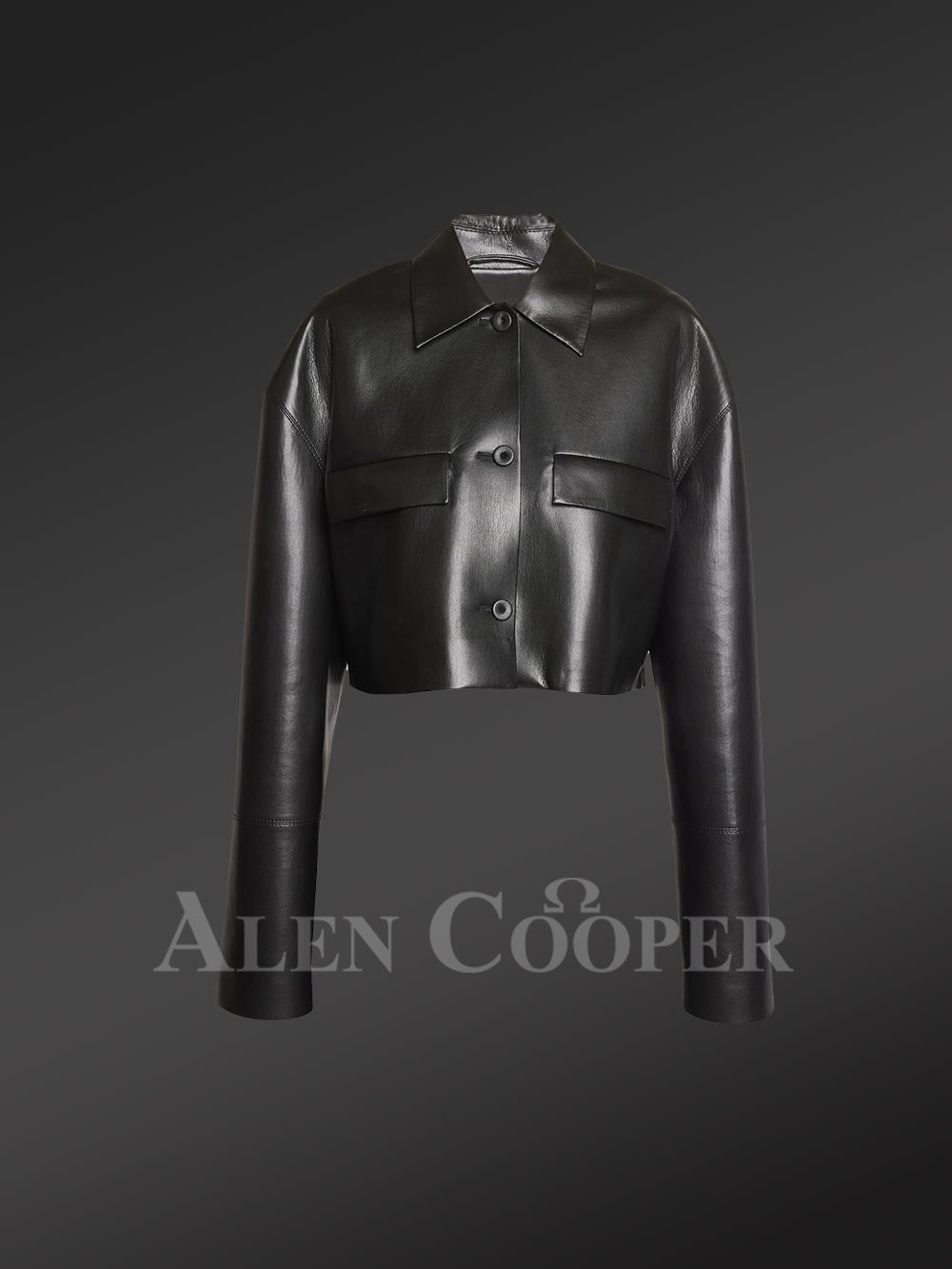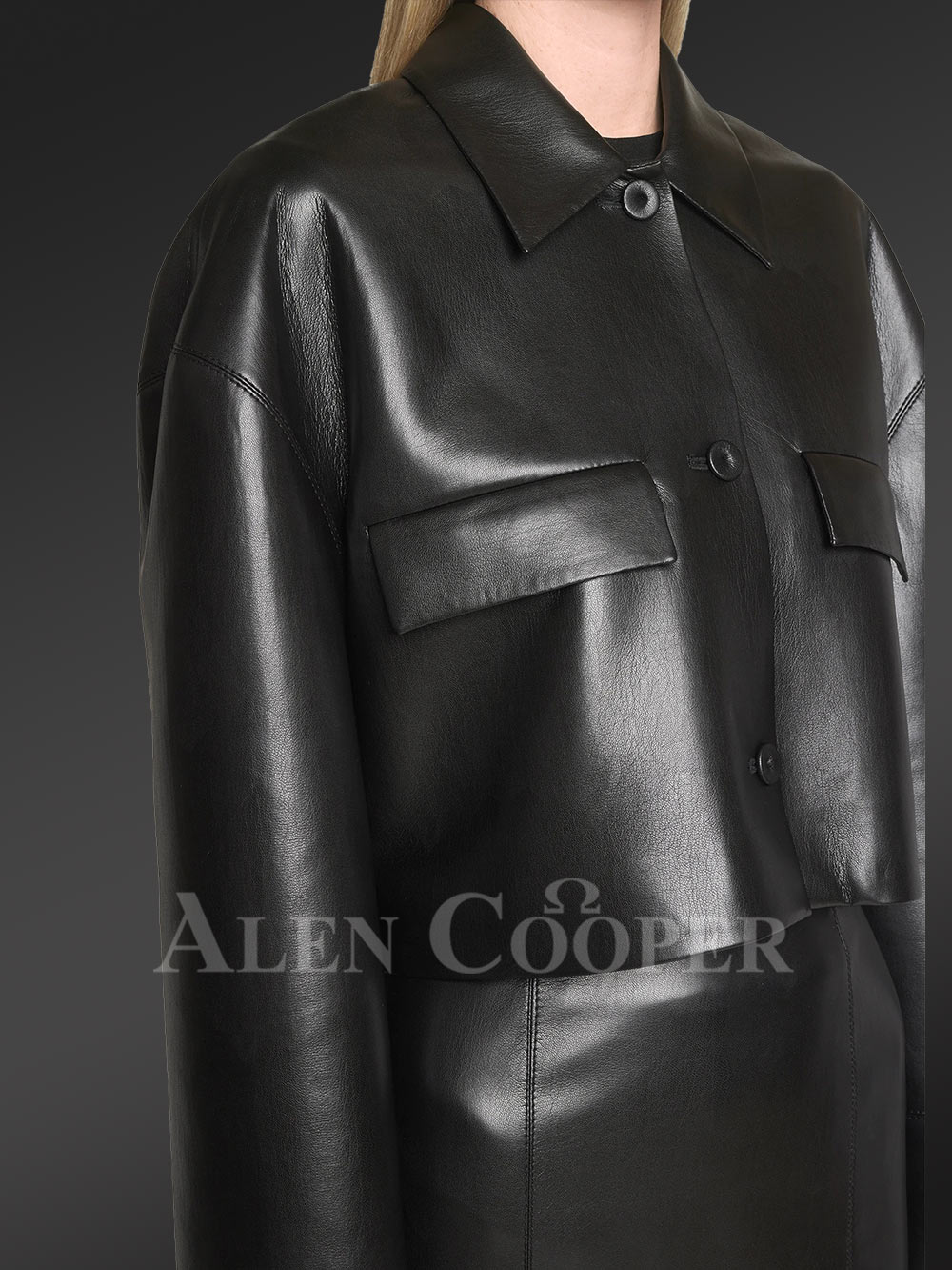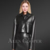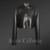 Button down Crop Leather Jacket And Stylish Leather Skirt of Lambskin