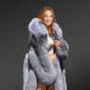 Womens Dressy Silver Fox Fur Coat Beautified with Plush Comfort