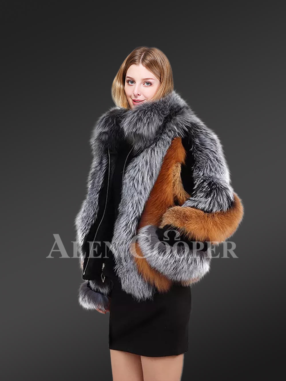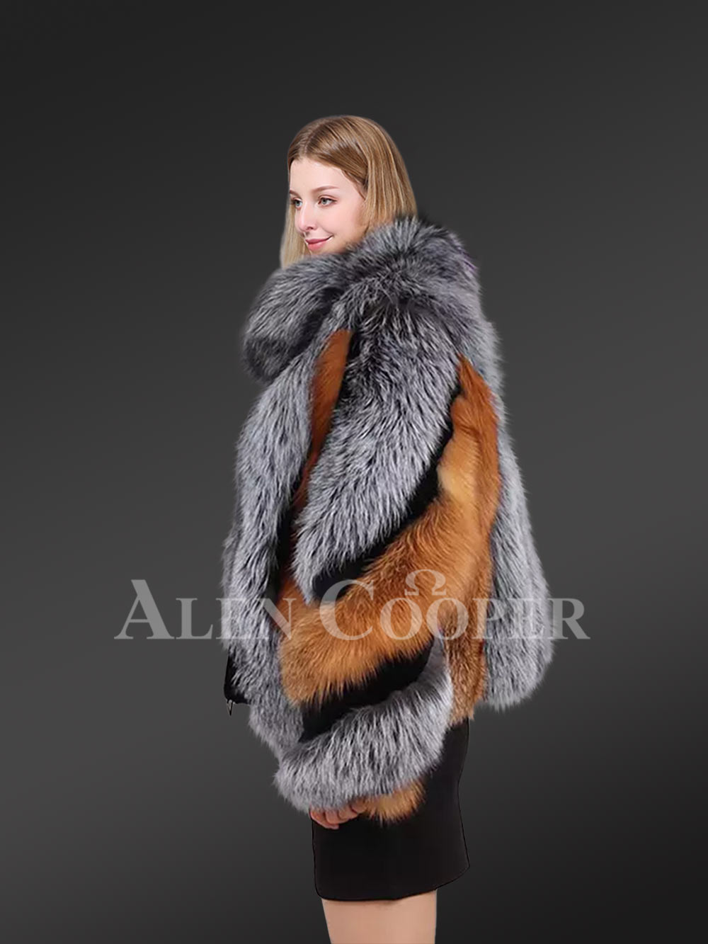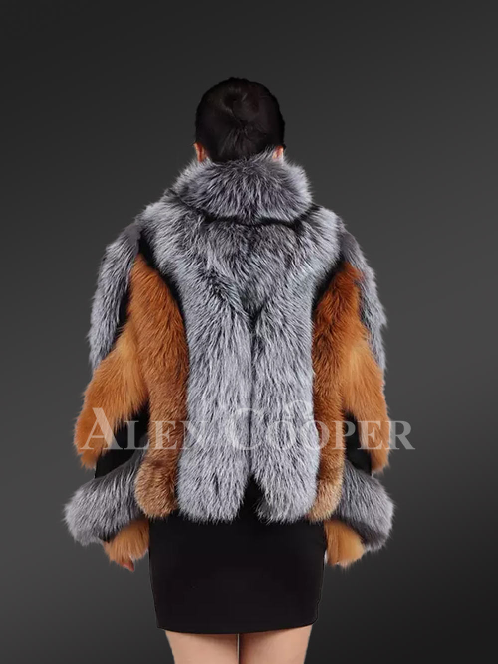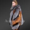 Plush pelts of Silver fox and Red fox also stylize the front and back sides of this trendy outfit. To give this jacket its unique aesthetic appeal, designers have artistically arranged the pelts all over the body. At the same time, one can enjoy the warmth of fox fur all around the body owing to this designing style.