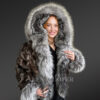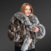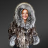 The unmistakable aesthetic appeal of this deluxe womens fox fur crop jacket is the outcome of fine craftsmanship. Gifted artists have handcrafted this outfit using sectioned pelts of Blue fox. Furthermore, trims of fur from Silver fox are used to design the frontline and accentuate the hood as well as the cuffs. Certainly, the pelts from Blue fox and Silver fox create a spectacular combination of shades.