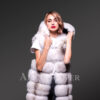 This modish womens fox fur vest will undeniably be a valued addition to one’s collection of gorgeous winter outfits. It brings the luxurious feel as well as the regal looks of Blue fox fur. At the same time, it adds another layer of insulation when worn over a sweater or jacket during the winter. Furthermore, this lightweight and breathable vest of fox fur is equally suitable for the fall season.