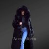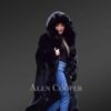 This luscious coat is made from superior Arctic fox fur and features a dense finish with front open clip lock hooks. The full-length dense fur lapel that even goes around the hood completes the look. It has horizontal stitch detailing around the collar and lapel for an elongated look. The premium quality Arctic fox outerwear is a classy yet trending piece in the fashion industry. The eye-catching long coat uplifts the coat to high fashion. The regal soft hood is a perfect fit for a timeless look.