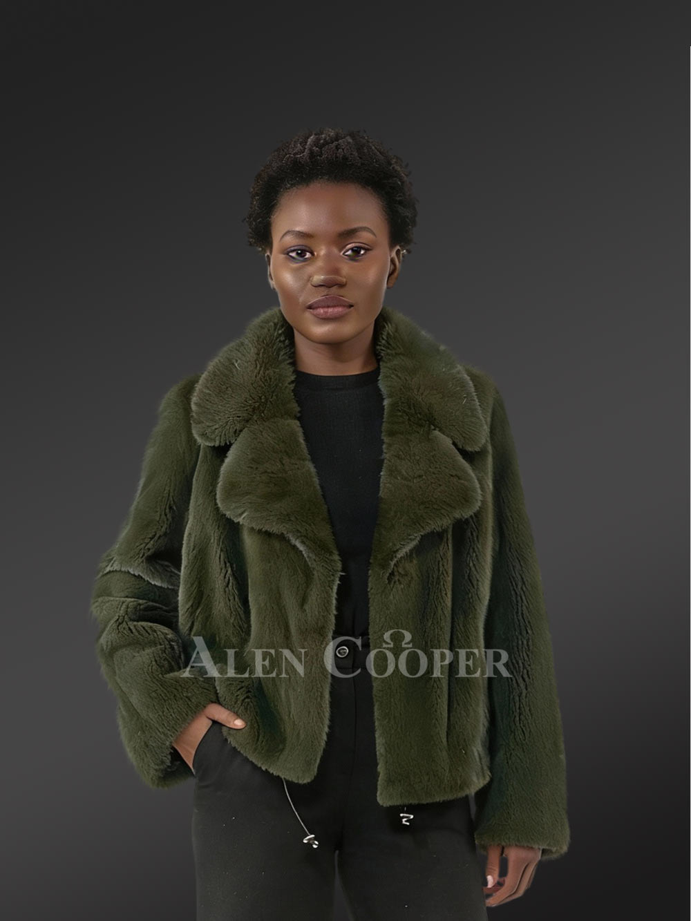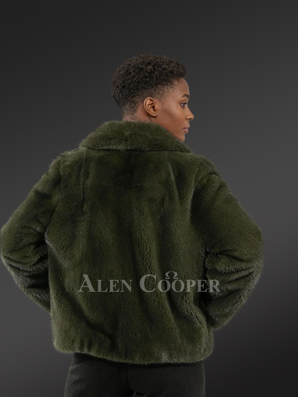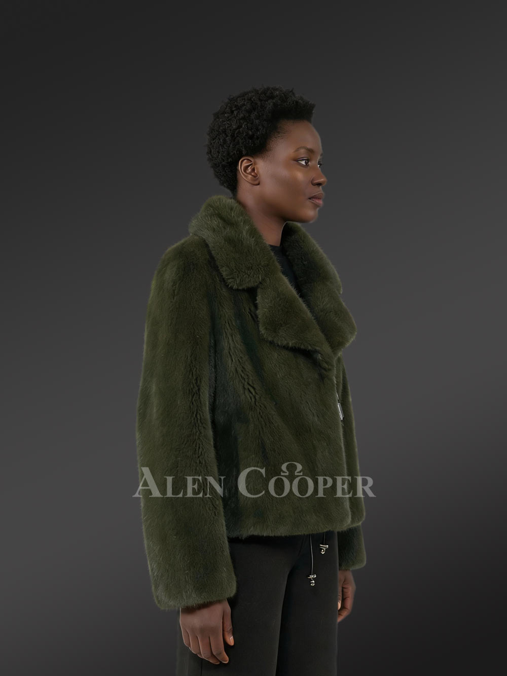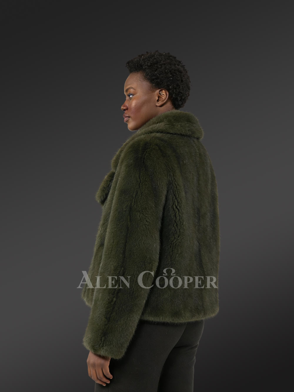 Women’s Fullskin Mink Dressy Blazer Coat in Olive