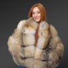 Womens Golden Fox Fur Short Jacket – Fashion-Forward Outfit for Winter