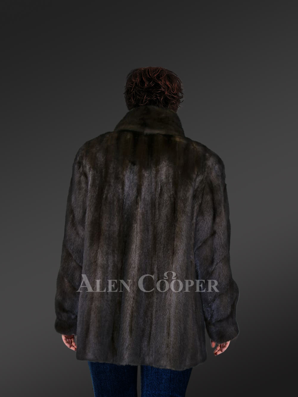 - Deluxe mid-length coat of mink fur looks ravishing in dark brown with a modish button at the top