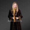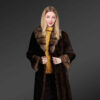 The concealed fastener is another key point of this fashionable long coat. One may use it to adjust the fitting of the waistline. Its long and wide sleeves aren’t just prettifying. They also cover the hands from the cold wind. The sable fur detailing at the cuffs undeniably enhances the aesthetic charm of this winterwear. Its light brown shade looks striking in contrast to the dark brown shade of the mink fur on the body.