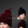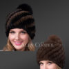 Womens Mink Hat with Fox Fur Pompom at the Top with a Playful Vibe